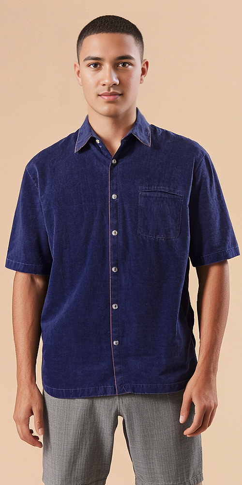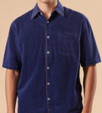 ACID WASHED SHIRT IN BABY CORD FABRIC, WITH SIDE SLITS, HALF SLEEVES AND STANDARD SHIRT COLLAR