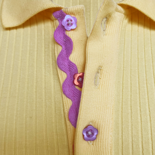 POLO STYLE SHIRT IN RIB KNIT WITH FUN BUTTONS AND LACE DETAILS