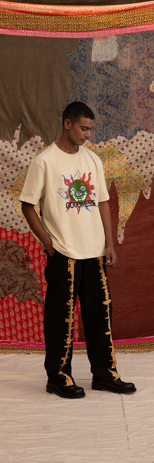 The tie dye design and colors on the trouser are chosen to reflect the impression and beauty of such conscious culture embraces.